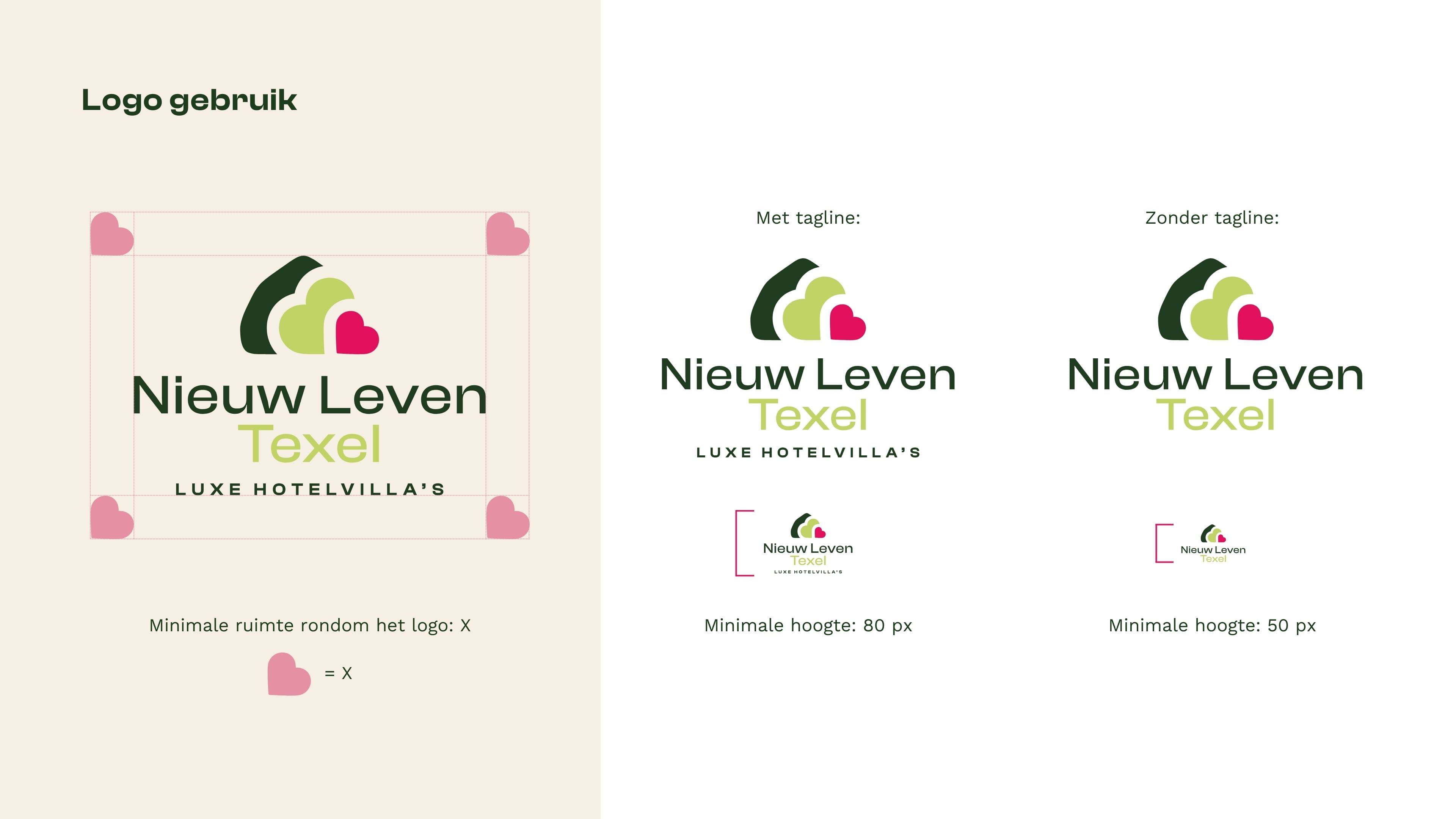 ‘Verrassend anders’ is een belangrijke kernwaarde en dat zie je terug in het uitgesproken kleurenpalet: lichtgroen gecombineerd met fel roze. Een opvallende look die past bij de ambitie van Nieuw Leven Texel.